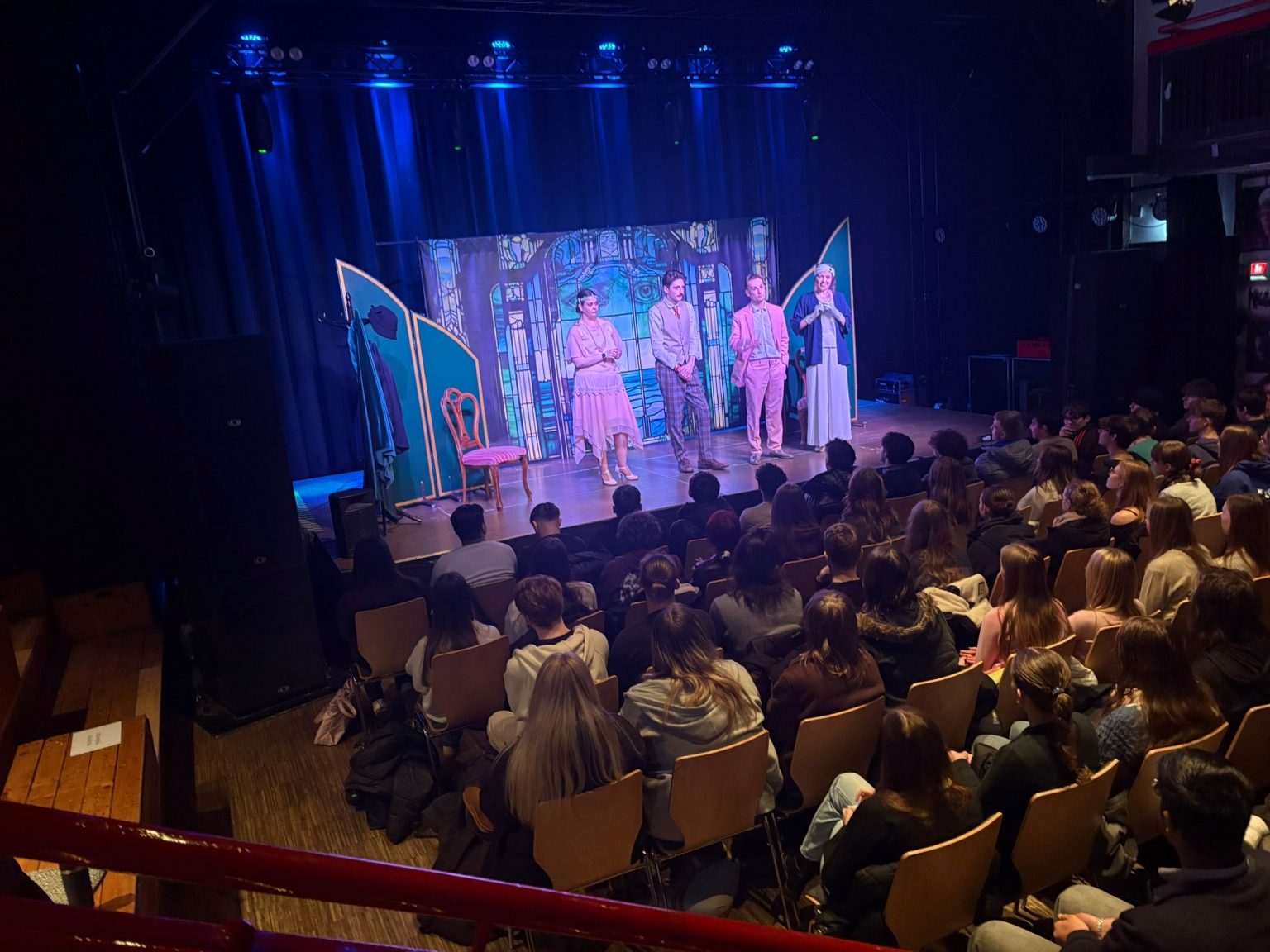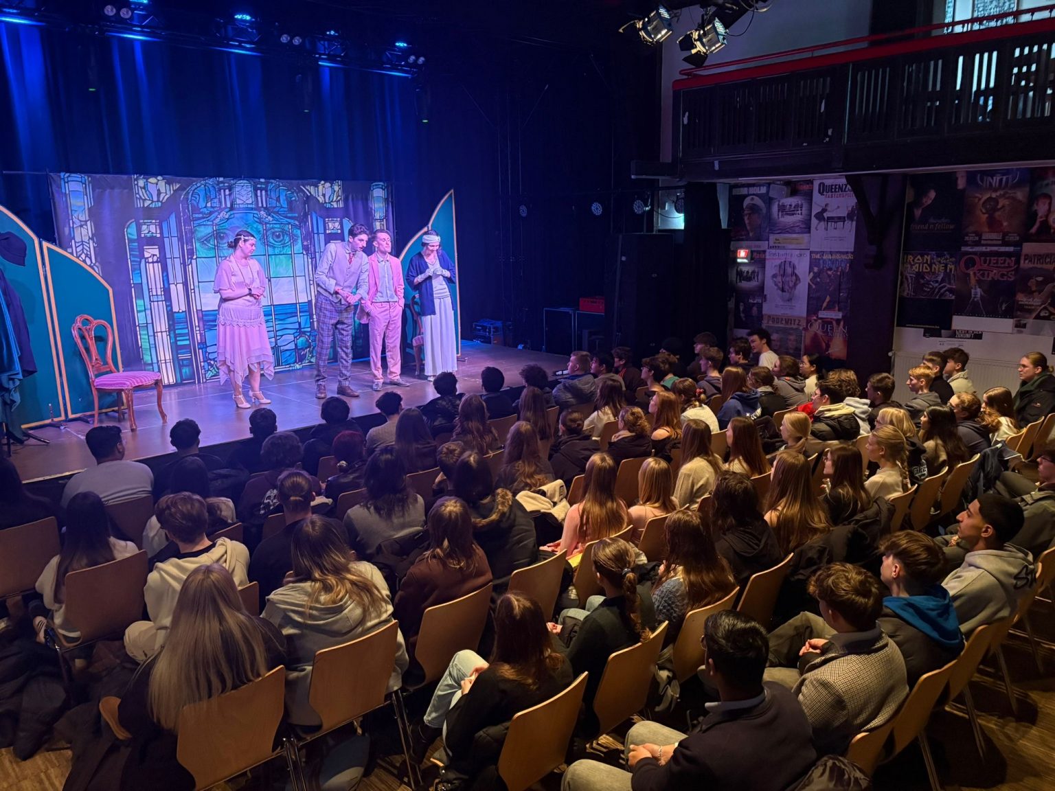 Am 15.01.2026 war das White Horse Theatre zu Gast in der Jahnhalle in Nordenham. Für die Jahrgänge 5 und 6 sowie 7 bis 10 wurden altersgerechte englische Theaterstücke aufgeführt, die den Schüler:innen einen lebendigen Zugang zur englischen Sprache ermöglichten. Für die Jahrgänge 11 und 12 stand das Stück „The Great Gatsby“ auf dem Programm. Die Inszenierung bot einen eindrucksvollen Zugang zur englischsprachigen Literatur und stellte eine gelungene Ergänzung zum Unterricht dar. Die professionelle Darbietung und die direkte Einbindung des Publikums sorgten für große Begeisterung. Für unsere Schüler:innen ergab sich nach den Aufführungen jeweils die Möglichkeit den vier britischen Schauspieler:innen Fragen zu stellen. Diese Möglichkeit wurde von allen Jahrgängen genutzt, um mehr über die Stücke, aber auch Einblicke in die Welt der Schauspielerei zu gewinnen.