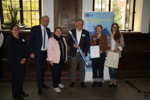 Die Urkunde wurde durch die für uns zuständige Dezernentin, Frau Susann Kletzin, und die Leitung des Regionalen Landesamts für Schule und Bildung (RLSB) Osnabrück überreicht. Vor Ort vertreten waren unser Schulleiter Herr Horn sowie unsere beiden Europakoordinatorinnen Frau Pargmann und Frau Wiedenhöfer.