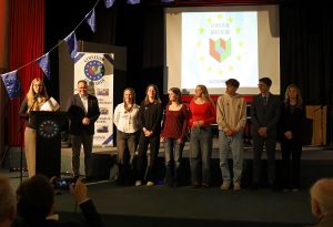 Ein besonderer Moment der Feier war die erstmalige Ernennung der Europabotschafter unserer Schule. Diese sieben Schüler/innen des zehnten und elften Jahrgangs übernehmen künftig eine wichtige Rolle: Sie vertreten die Schule bei europäischen Projekten, wirken an internationalen Begegnungen mit und setzen eigene Ideen zur Förderung europäischer Werte um. Sie sollen als Bindeglied zwischen Schülern und Lehrern Europaprojekte mitgestalten und aktiv dazu beitragen, Europa im Schulalltag sichtbar zu machen.